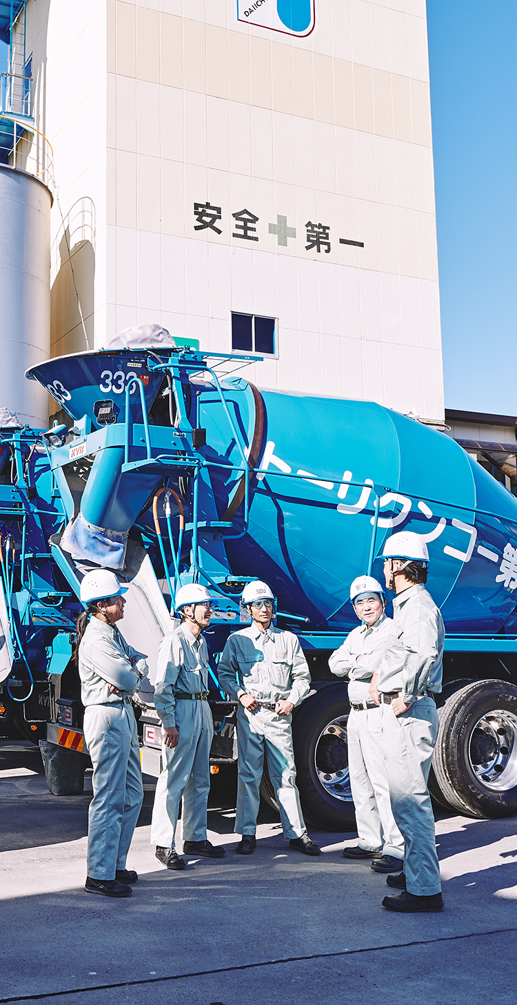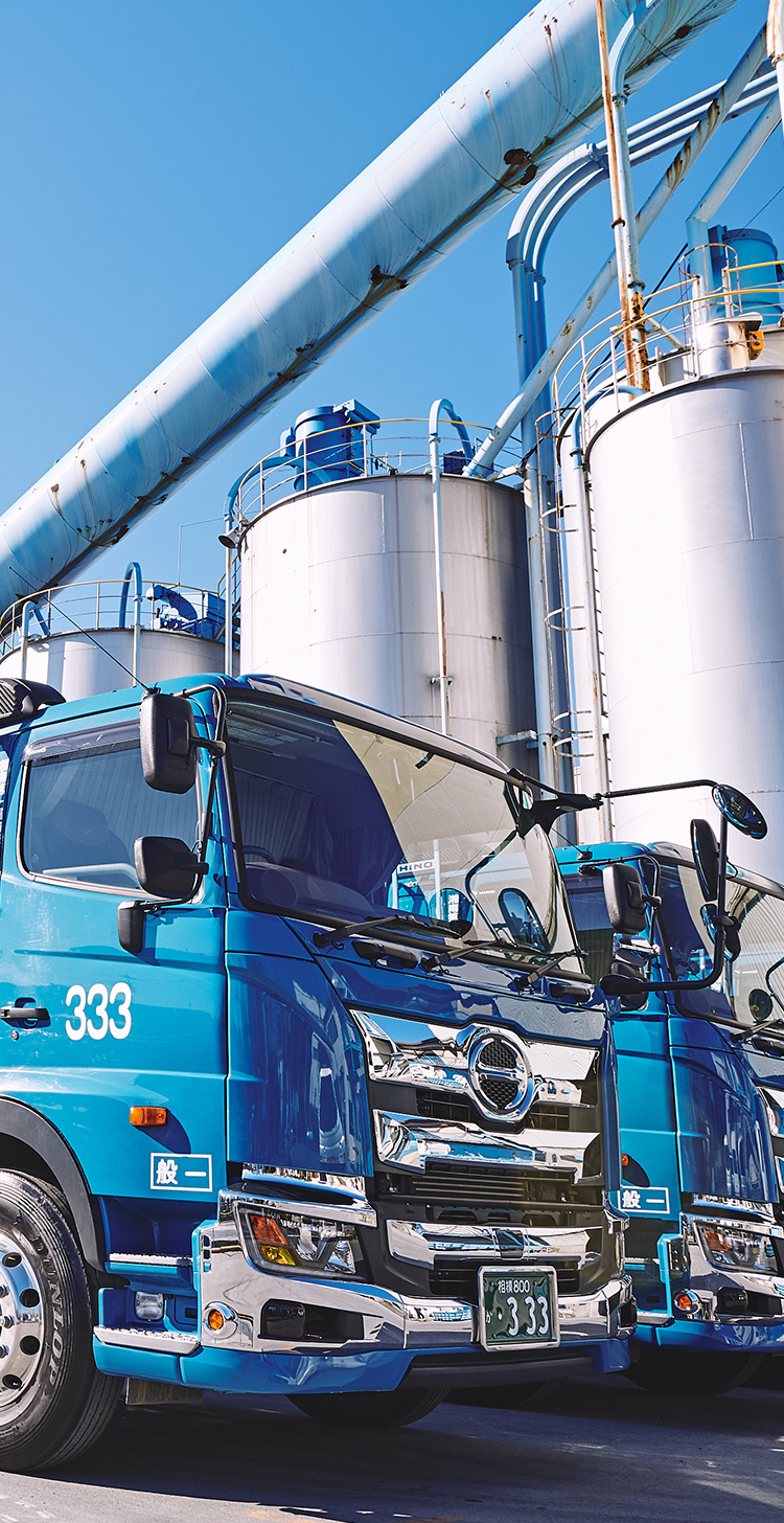 荷主から現場へ生コンクリートを運搬、搬入すること及びそれに付随して原料であるセメントを工場等へ運搬搬入します。